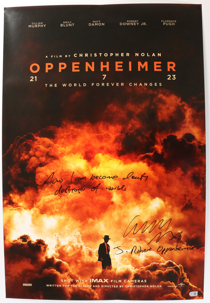 Cillian Murphy as J. Robert Oppenheimer in Oppenheimer (SWAU) Signed 27x40 Poster with Character Name & Quote