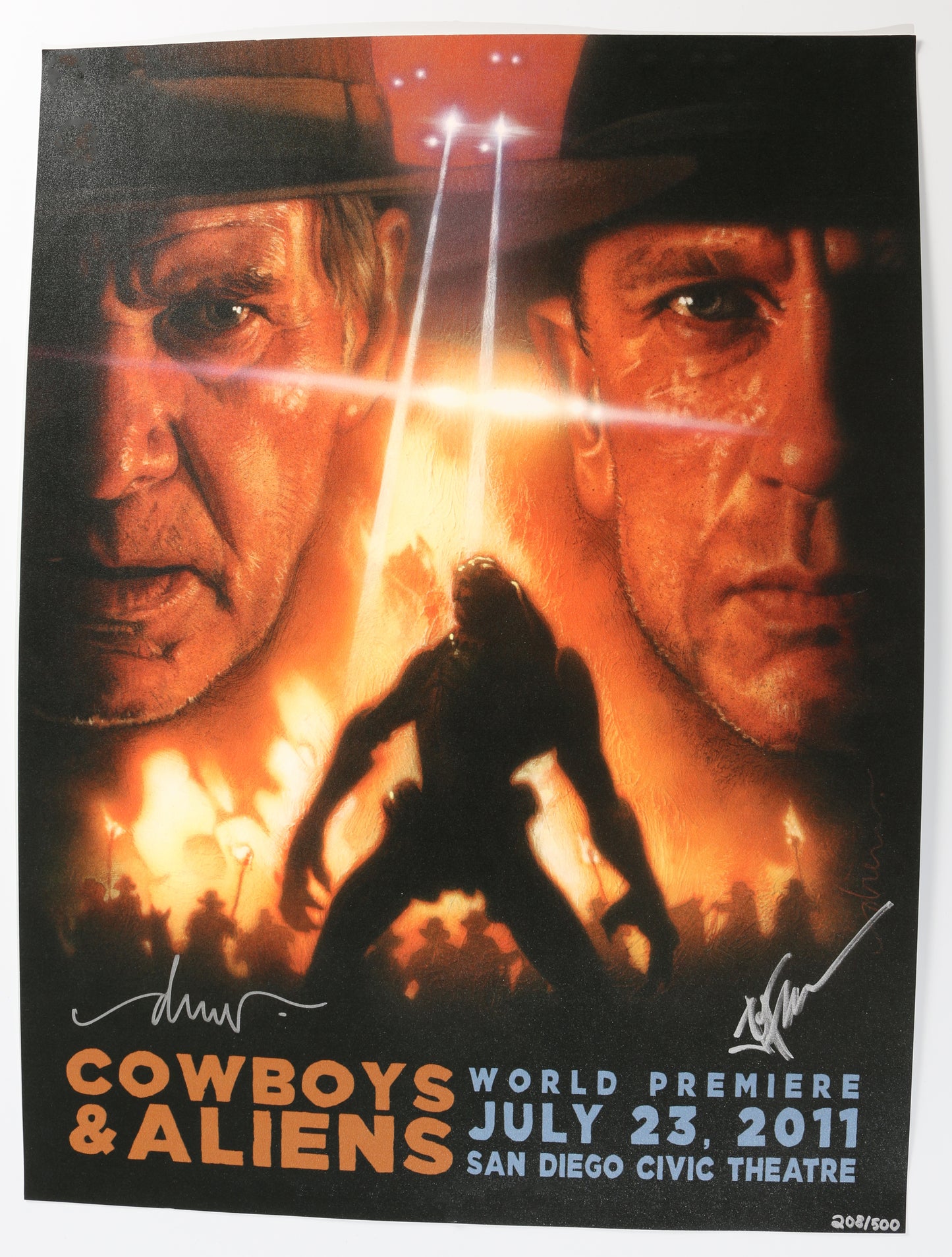 Cowboys and Aliens 18x24 SDCC Limited Edition #208/500 Art Print Signed by Artist: Drew Struzan & Director: Jon Favreau