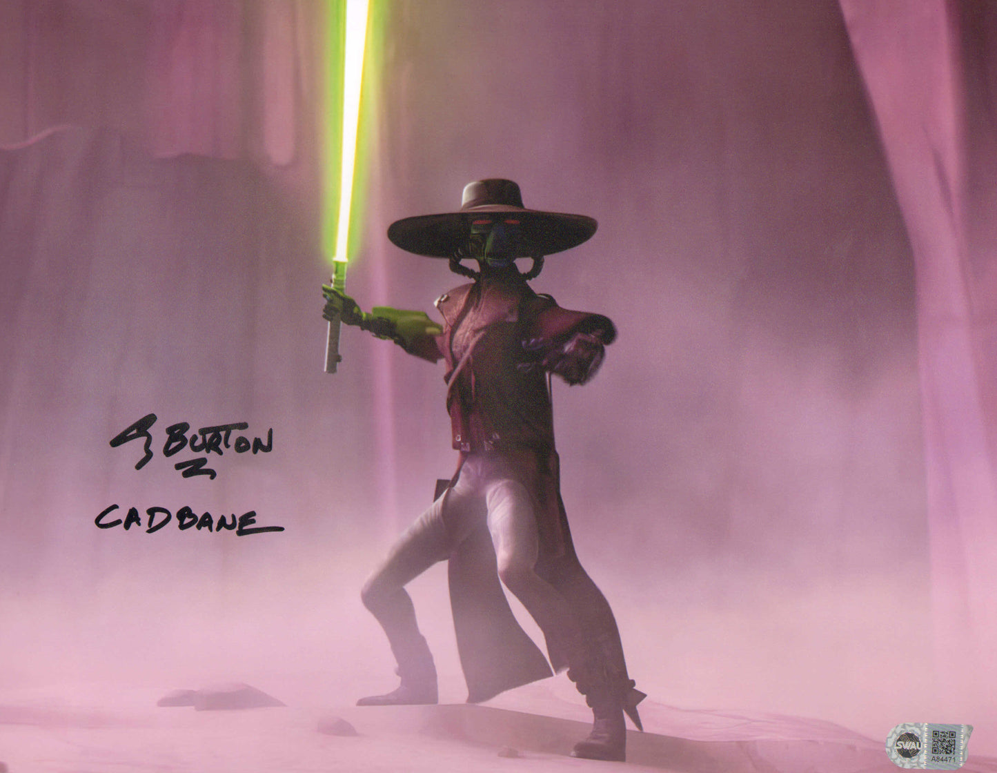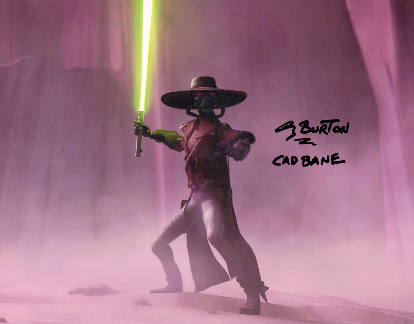 Corey Burton as Cad Bane in Star Wars: The Clone Wars (SWAU) Signed 10x20 Photo with Character Name & Quote