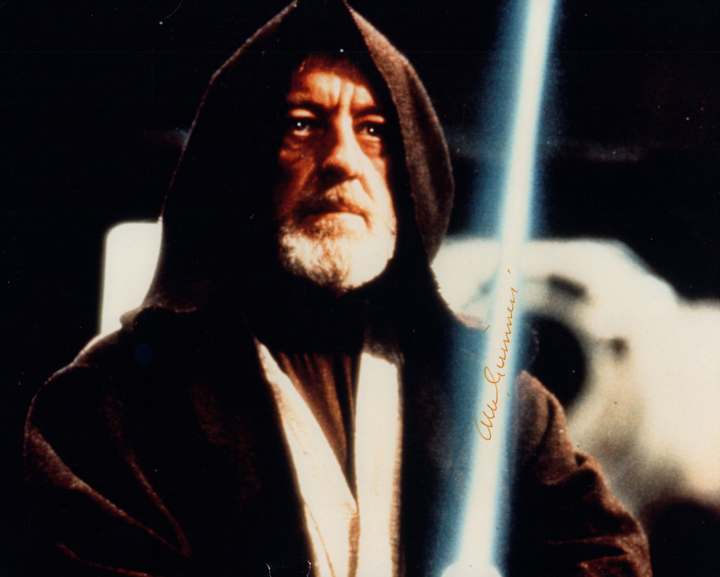Alec Guinness as Obi-Wan Kenobi with Lightsaber in Star Wars: A New Hope Signed 8x10 Photo