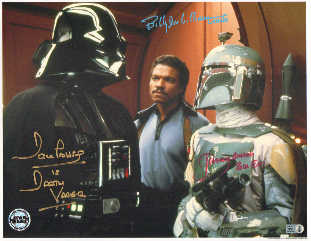 Dave Prowse as Darth Vader, Jeremy Bulloch as Boba Fett, & Billy Dee Williams as Lando in Star Wars: The Empire Strikes Back (Official Pix) Signed 11x14 Photo with Character Names