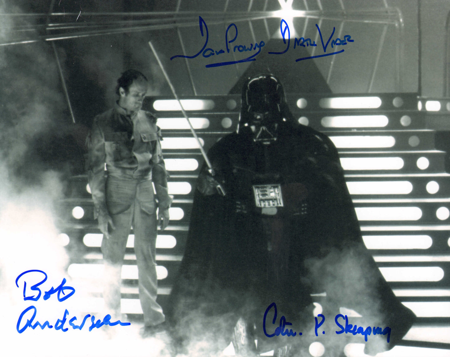 Dave Prowse as Darth Vader, Bob Anderson & Colin Skeaping as Stunt Performers in Star Wars: The Empire Strikes Back Signed 8x10 Photo with Character Name