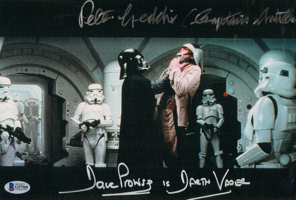 Dave Prowse as Darth Vaderv & Peter Geddis as Captain Antilles in Star Wars: A New Hope (Beckett) Signed 8x12 Photo with Character Names
