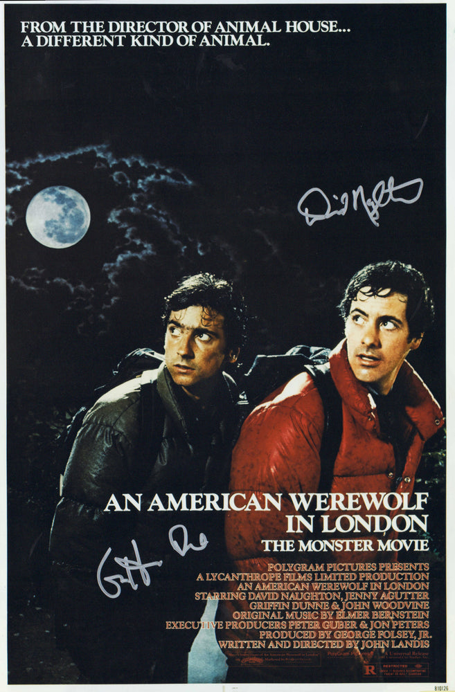 David Naughton as David Kessler & Griffin Dunne as Jack Goodman in An American Werewolf in London Signed 12x18 Mini Poster