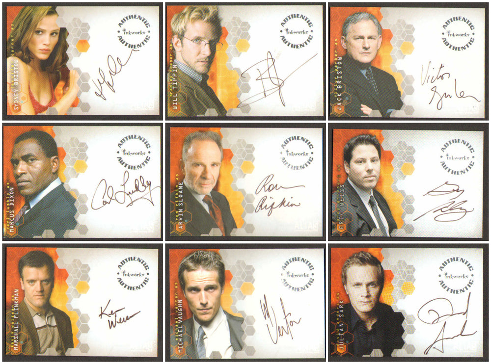 Alias Inkworks Trading Cards 9pc LOT Signed by Jennifer Garner, Bradley Cooper, Ron Rifkin, Michael Vartan, Carl Lumbly, Greg Grunberg, Kevin Weisman, Victor Garber, & David Anders