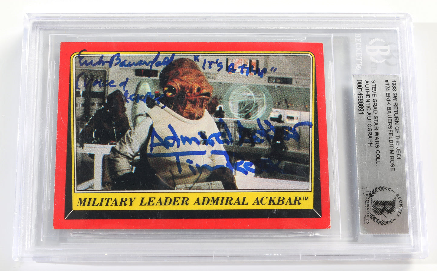 Erik Bauerfeld & Tim Rose as Admiral Arkbar in Star Wars: Return of the Jedi (Beckett Encapsulated) Signed 1983 Topps Trading Card