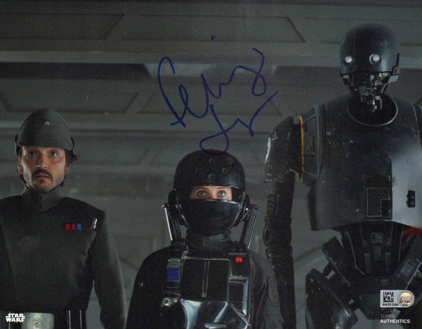 Felicity Jones as Jyn Erso with Cassian Andor & K-2SO in Rogue One: A Star Wars Story (Topps Authentics) Signed 8x10 Photo