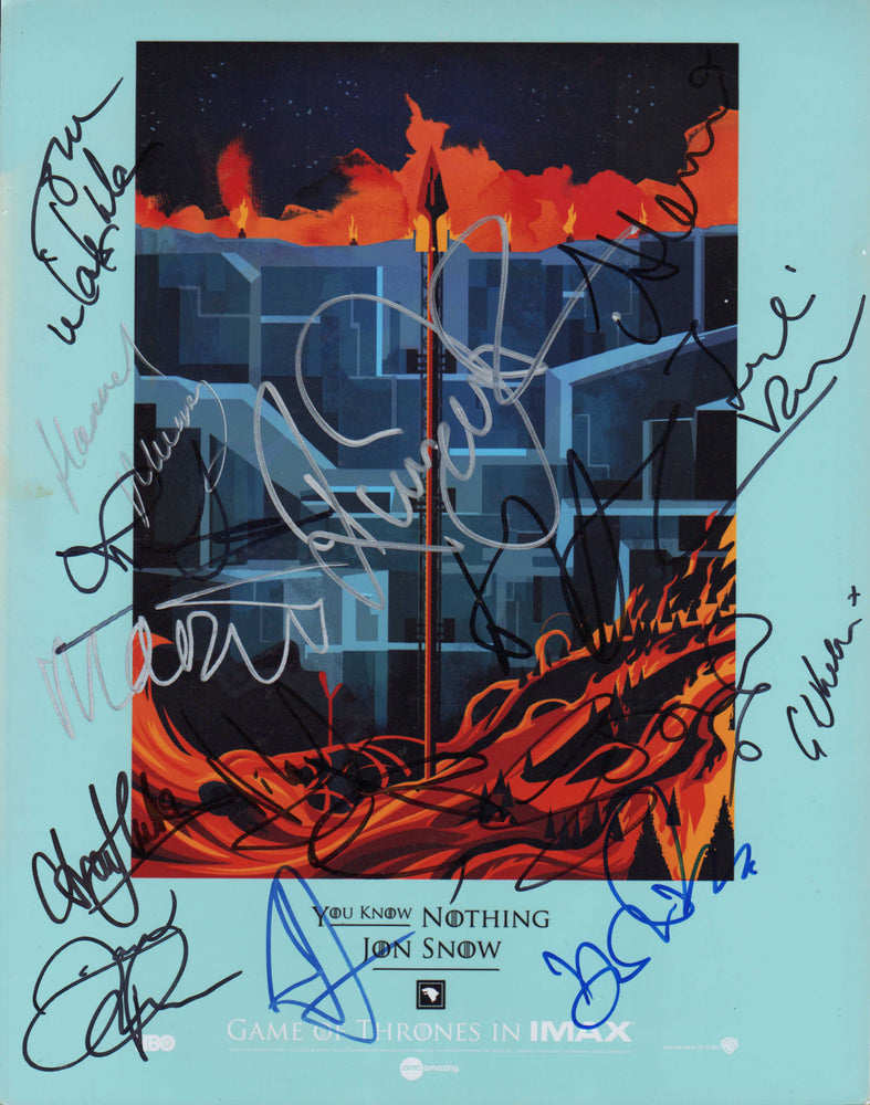 Game of Thrones: The North Remembers 24x36 Poster Cast Signed by Charles Dance, Mark Addy, Jack Gleeson, Natalie Dormer, Isaac Hempstead-Wright, Gwendoline Christie, Donald Sumpter, Daniel Portman, Natalie Emmanuel, Bella Ramsey, & Many More