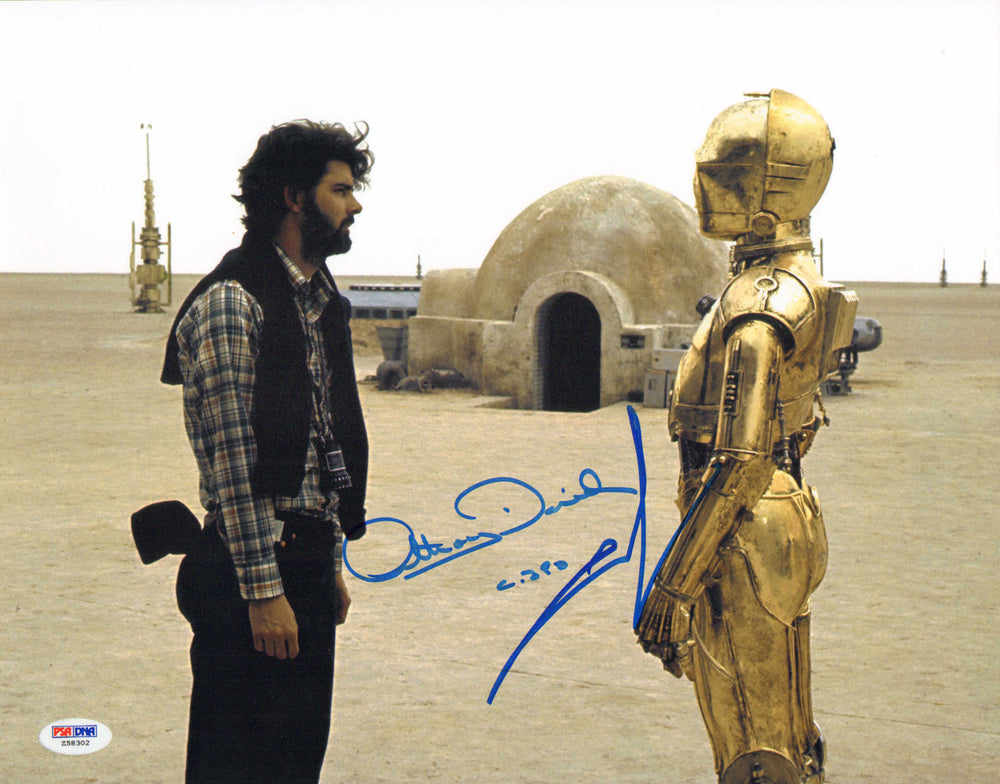 George Lucas Creator / Director of Star Wars with Anthony Daniels as C-3PO Behind the Scenes of Star Wars: A New Hope (PSA) Signed 11x14 Photo with Character Name