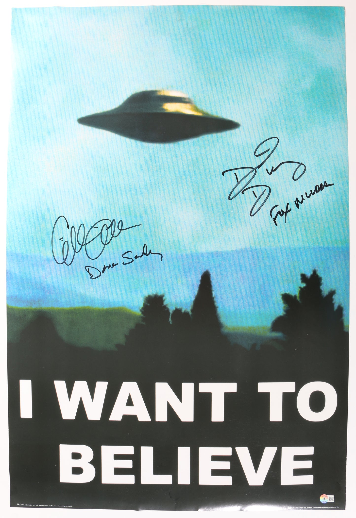 Gillian Anderson as Agent Dana Scully and David Duchovny as Agent Fox Mulder in The X-Files (Beckett Witnessed) Signed 24x36 Poster with Character Names
