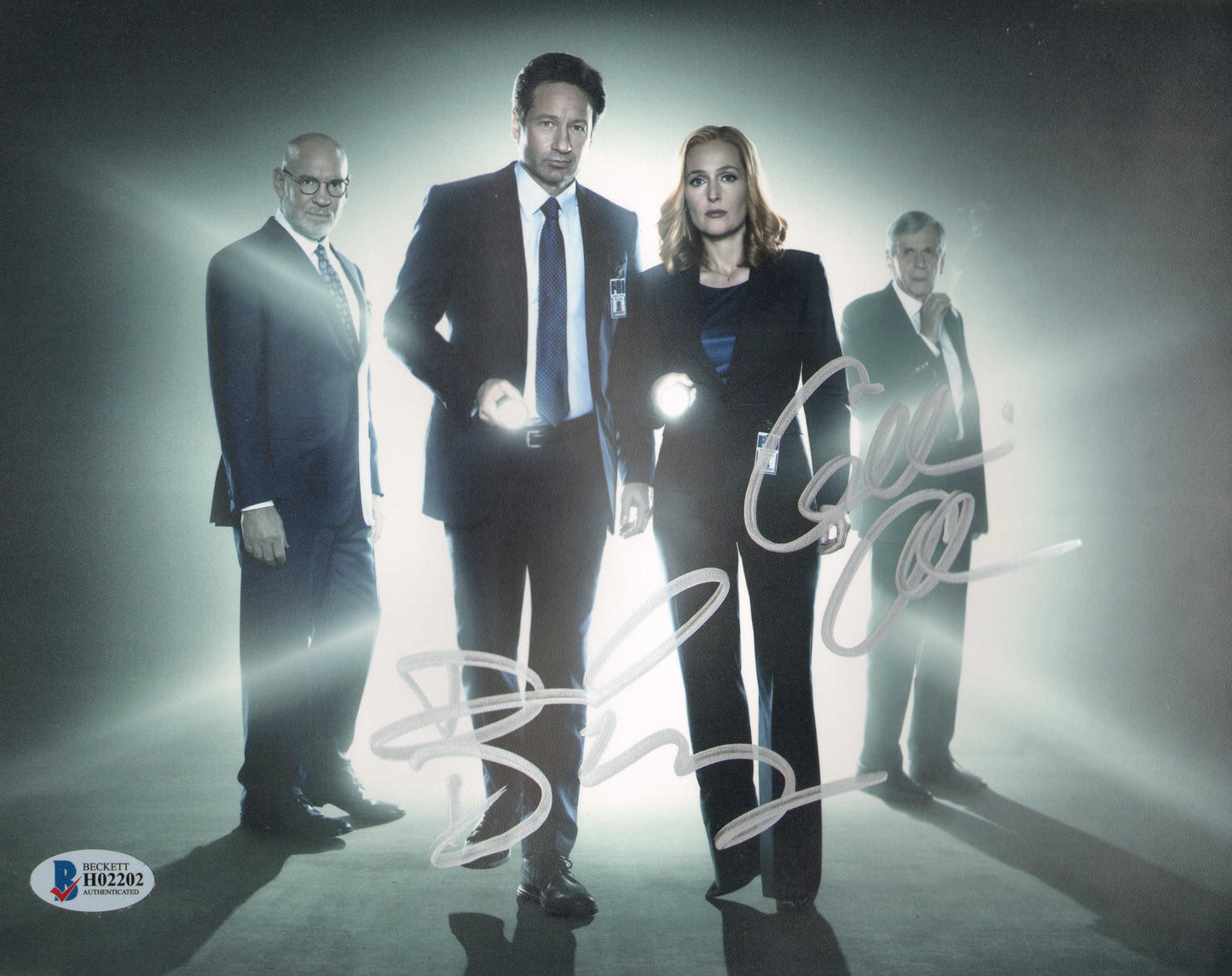 Gillian Anderson as Agent Dana Scully & David Duchovny as Agent Fox Mulder in The X-Files (Beckett) Signed 8x10 Photo