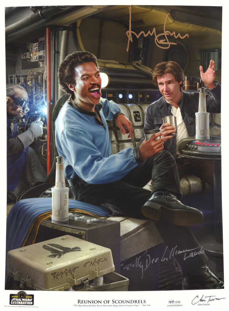 Harrison Ford as Han Solo & Billy Dee Williams as Lando in Star Wars: The Empire Strikes Back 'Reunion of Scoundrels' by Chris Trevas Signed Star Wars Celebration 2019 (Beckett Witnessed) Signed Limited Edition #154 / 250 18x24 Print
