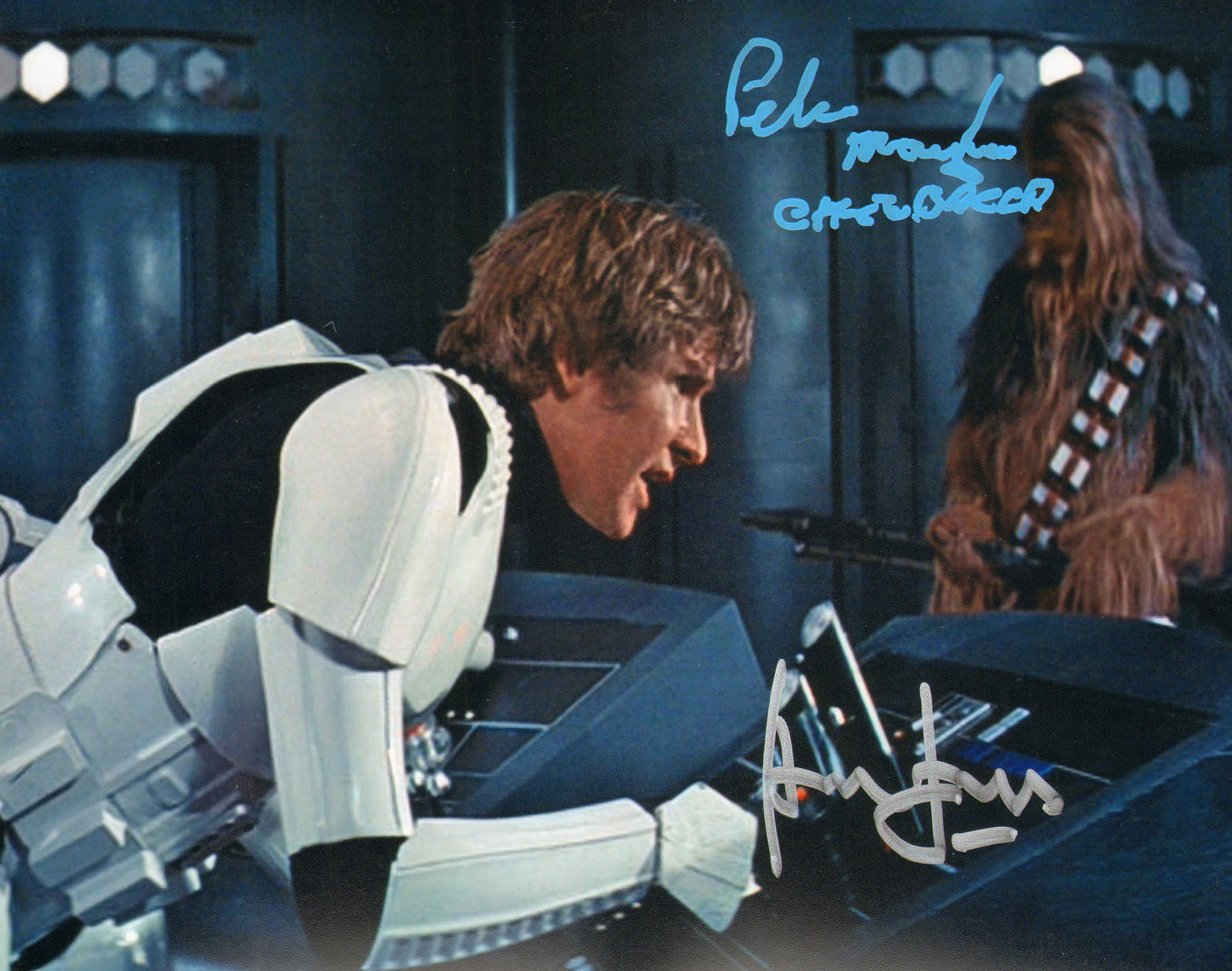 Harrison Ford as Han Solo & Peter Mayhew as Chewbacca in Star Wars: A New Hope Signed 8x10 Photo