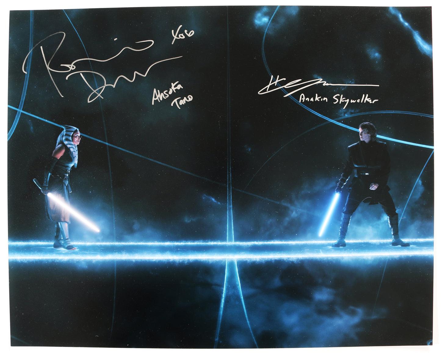 Hayden Christensen as Anakin Skywalker and Rosario Dawson as Ahsoka Tano in Star Wars: Ahsoka Signed 16x20 Photo with Character Names