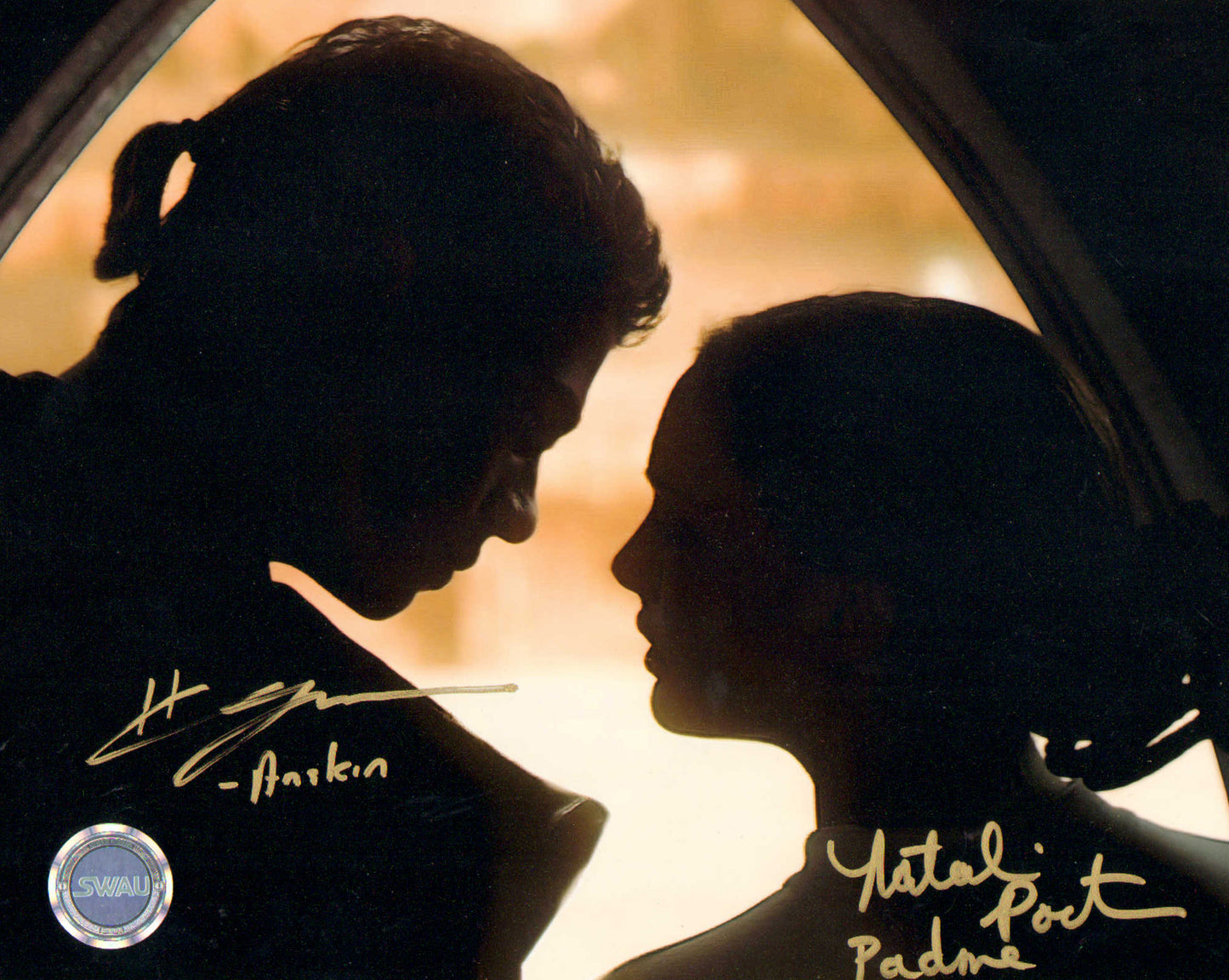 Hayden Christensen as Anakin Skywalker and Natalie Portman as Padme Amidala in Star Wars Episode II: Attack of the Clones (SWAU) Signed 8x10 Photo with Character Names