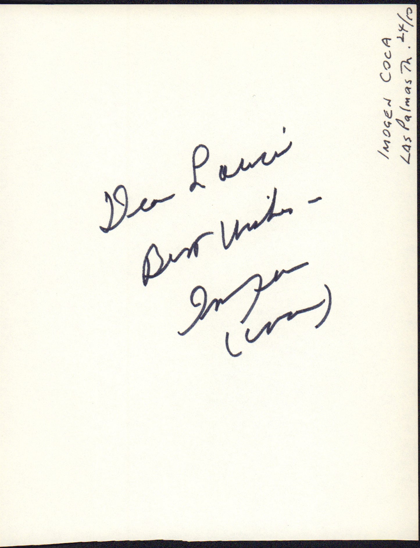 Imogene Coca Comic Actress Signed 5.5x4 Index Card