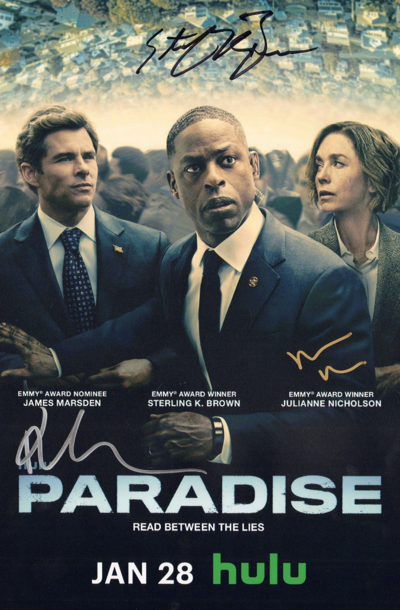 James Marsden as Cal Bradford, Sterling K. Brown as Xavier Collins, & Julianne Nicholson as Sinatra in Paradise Signed 12x18 Mini Poster