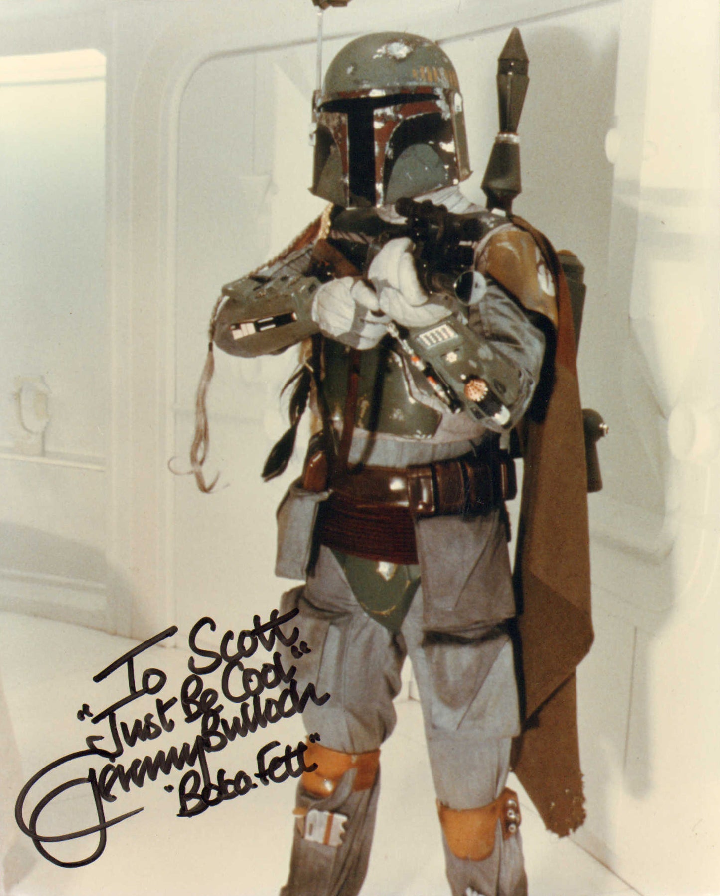 Jeremy Bulloch as Boba Fett in Star Wars: The Empire Strikes Back Signed 8x10 Photo with Charater Name & Quote