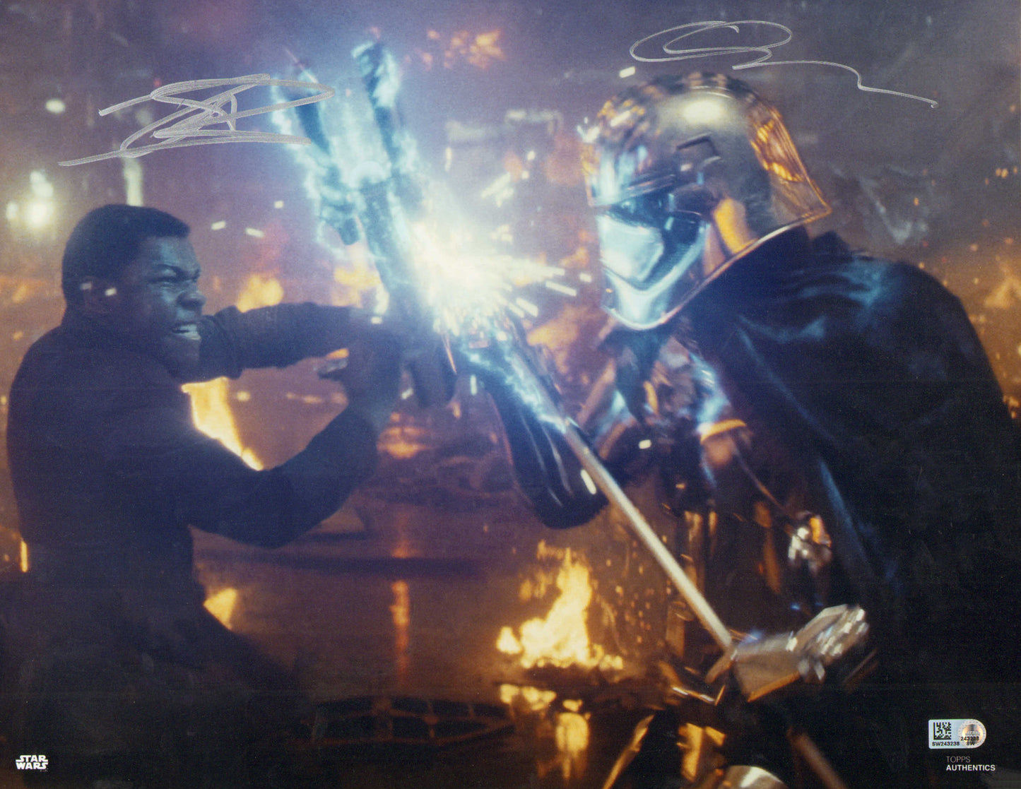 John Boyega as Finn vs. Gwendoline Christie as Captain Phasma in Star Wars: The Last Jedi (Topps Star Wars Authentics) Signed 11x14 Photo