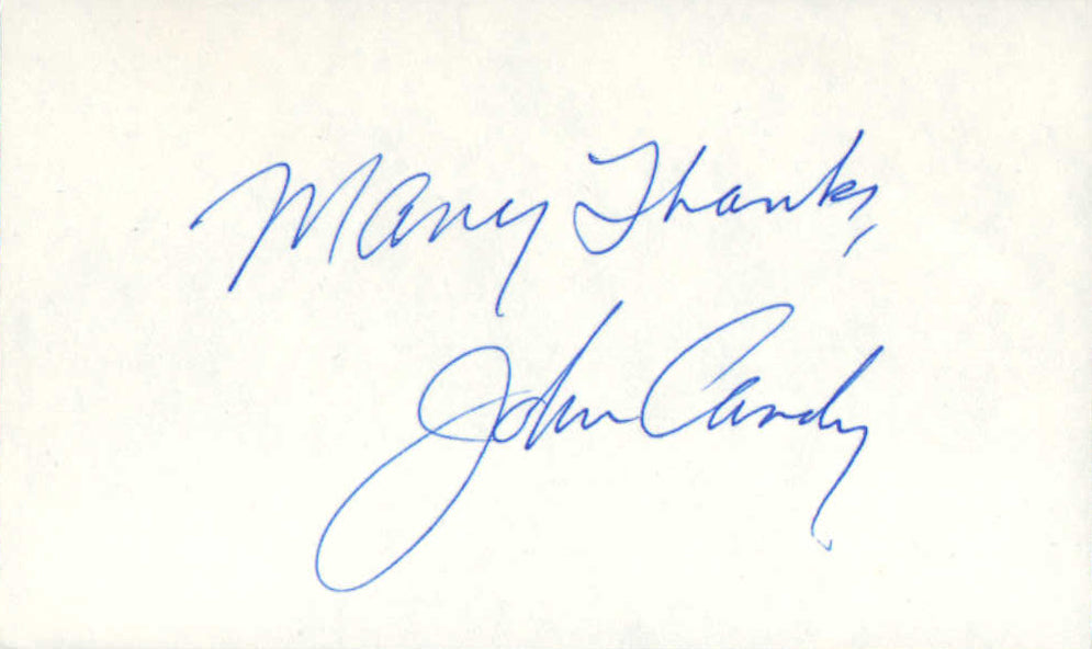 John Candy from Spaceballs, Planes Trains and Automobiles, National Lampoon's Vacation, & Home Alone Signed 5x3 Index Card
