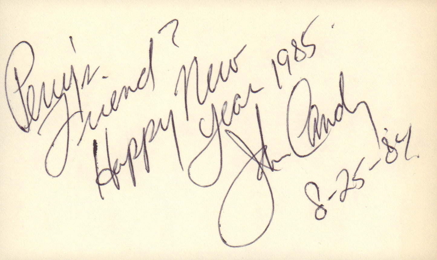 John Candy from Spaceballs, Planes Trains and Automobiles, National Lampoon's Vacation, & Home Alone Signed 5x3 Index Card