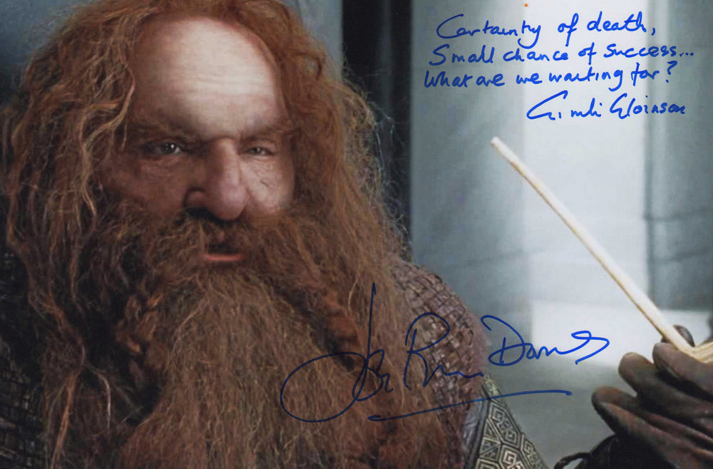 John Rhys-Davies as Gimli in The Lord of the Rings: Return of the King Signed 12x18 Photo with Character Name and Quote