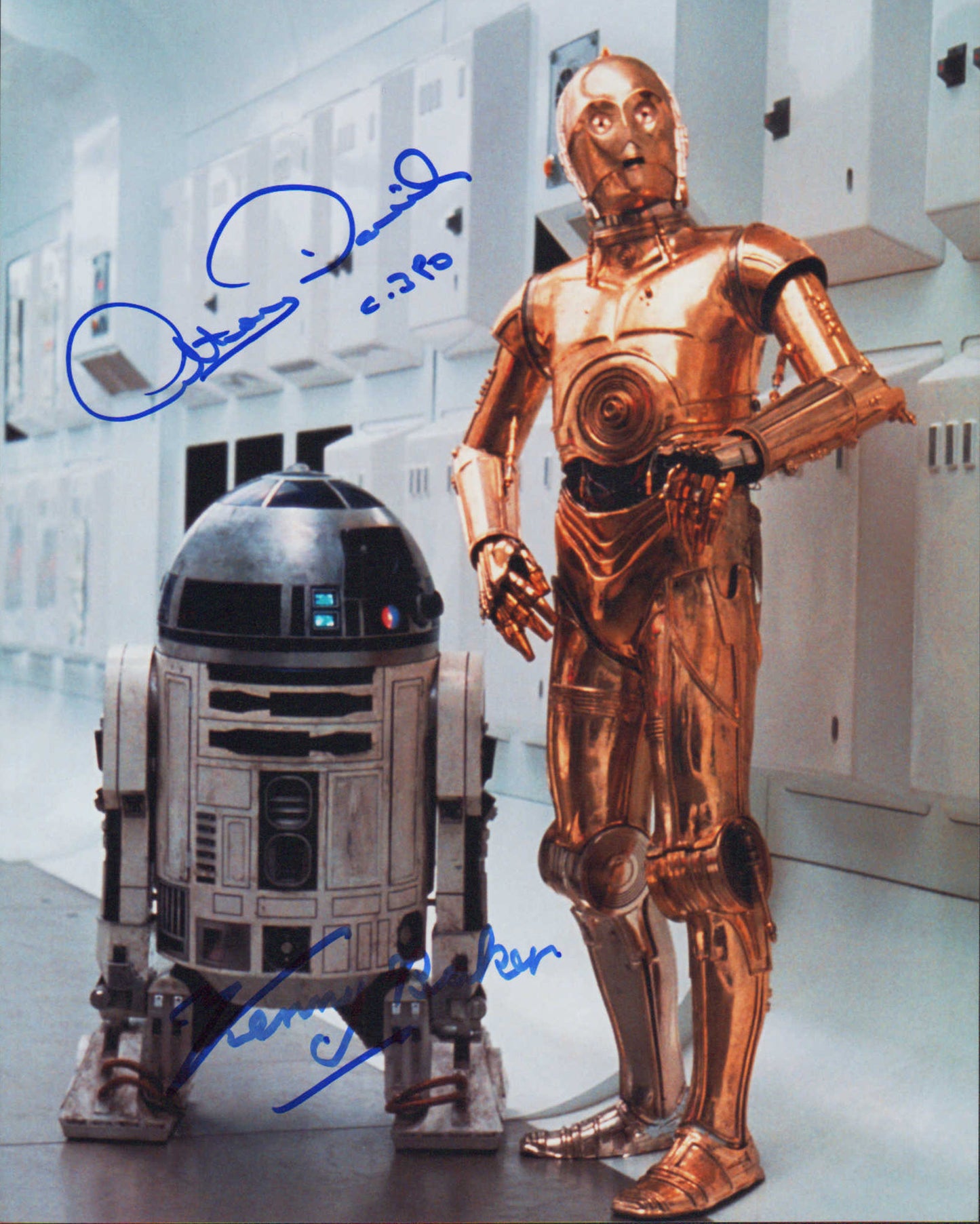 Anthony Daniels as C-3PO & Kenny Baker as R2-D2 in Star Wars: A New Hope Signed 11x14 Photo with Character Names