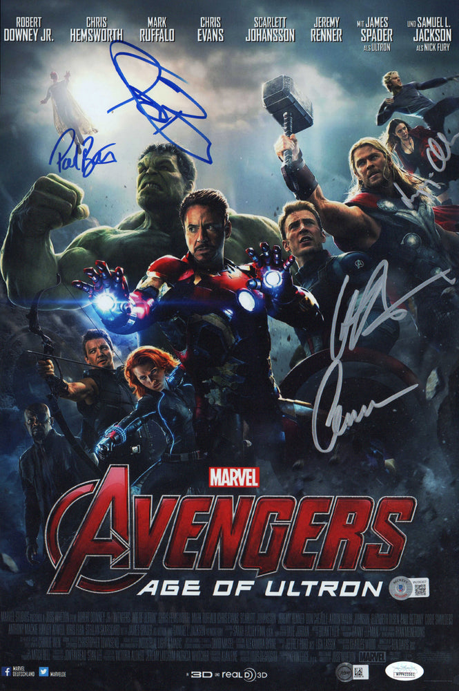 Avengers: Age of Ultron 12x18 Mini Poster (BAS / JSA Witnessed) Cast Signed by Chris Evans, Chris Hemsworth, Jeremy Renner, Elizabeth Olsen, & Paul Bettany