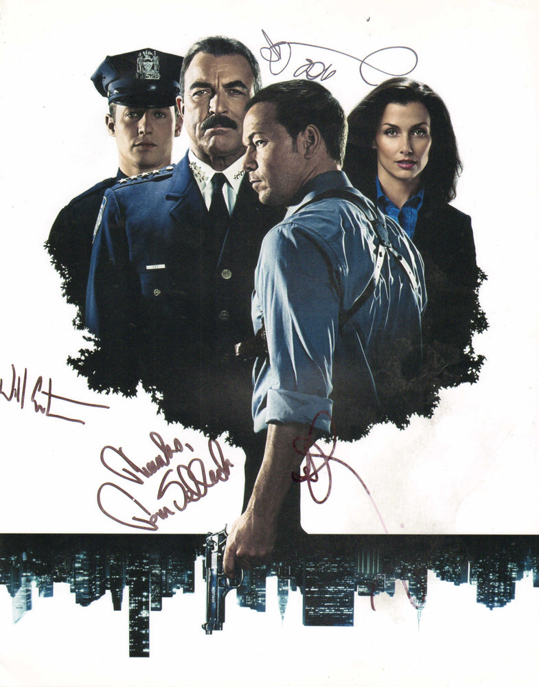 Blue Bloods 11x14 Photo Cast Signed by Will Estes, Tom Selleck, Donnie Wahlberg, and Sami Gayle