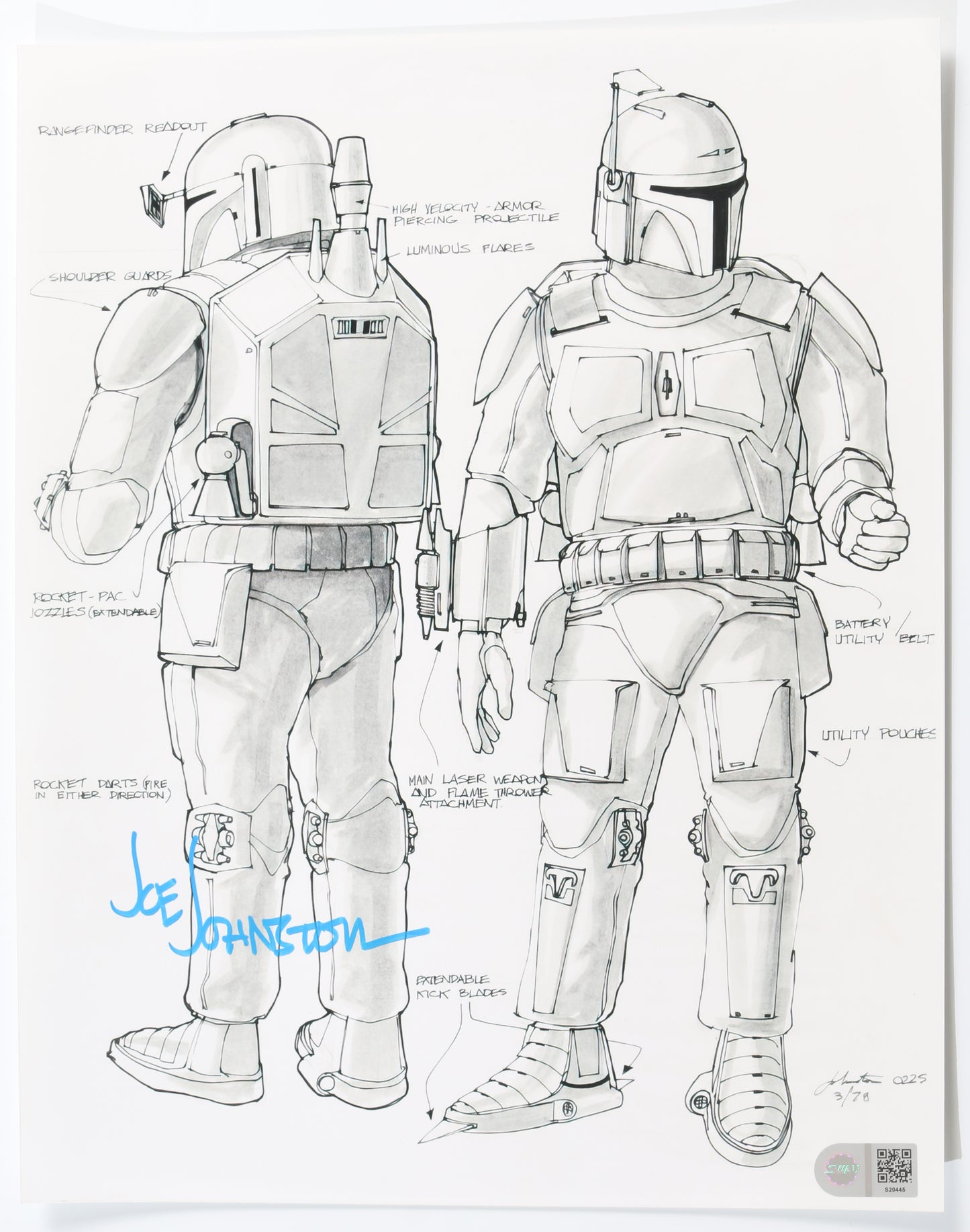 Boba Fett Prototype Costume Design from Star Wars: The Empire Strikes Back (SWAU) 11x14 Photo Signed by Creator: Joe Johnston