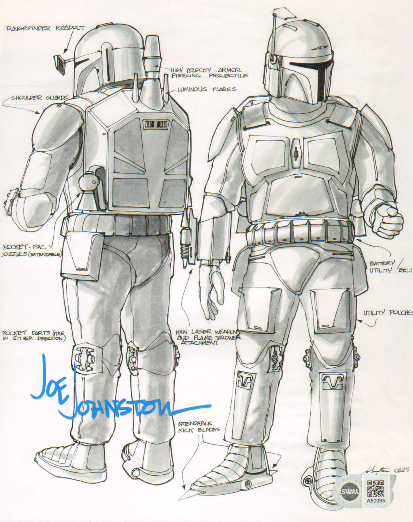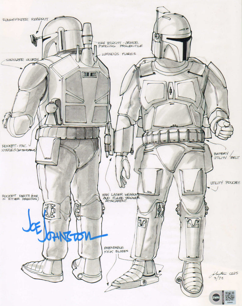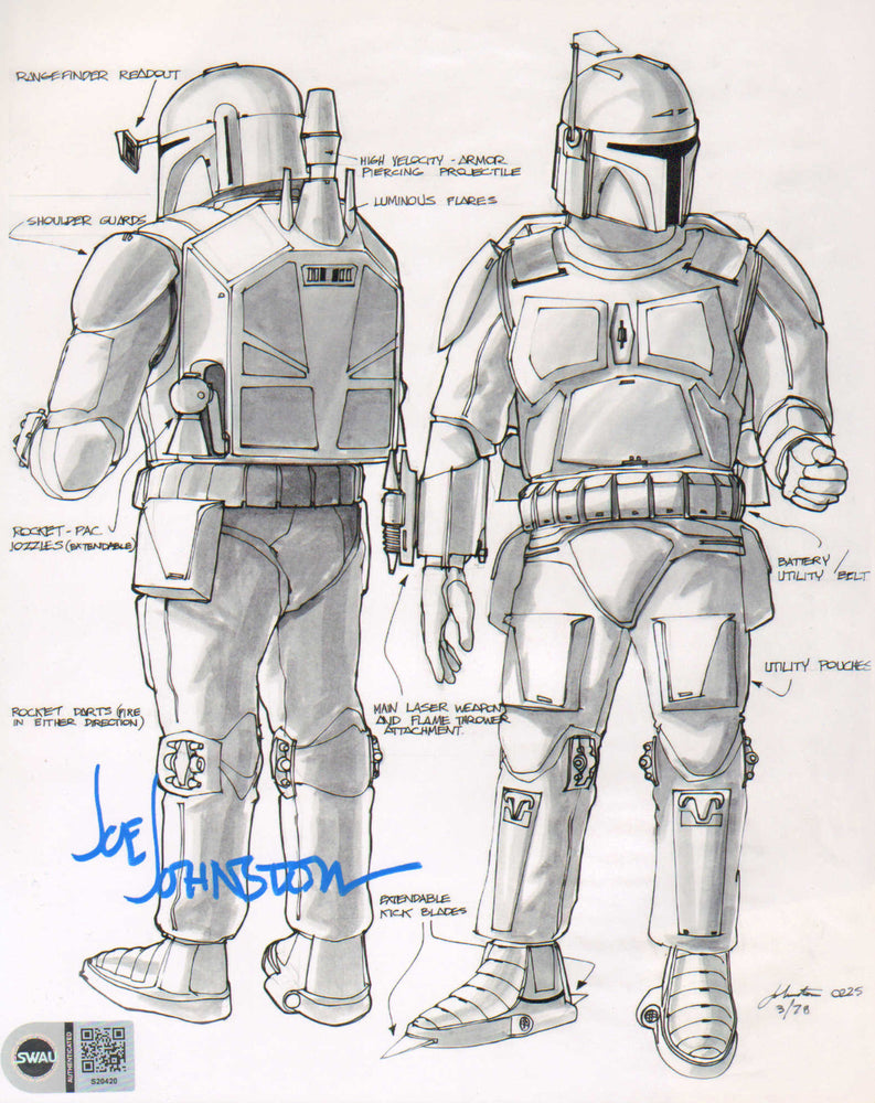 Boba Fett Prototype Costume Design from Star Wars: The Empire Strikes Back (SWAU) 8x10 Photo Signed by Creator: Joe Johnston