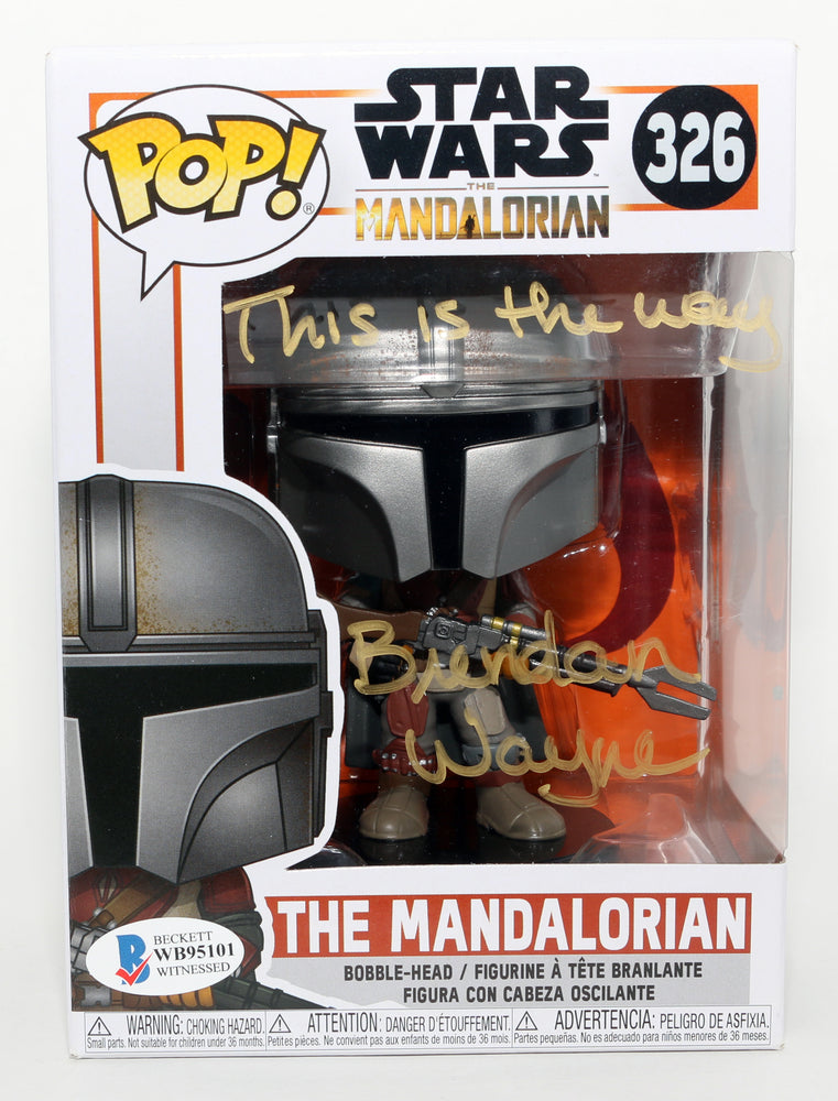 Brendan Wayne as The Mandalorian in Star Wars: The Mandalorian (Beckett) Signed Funko POP! #326 with Quote