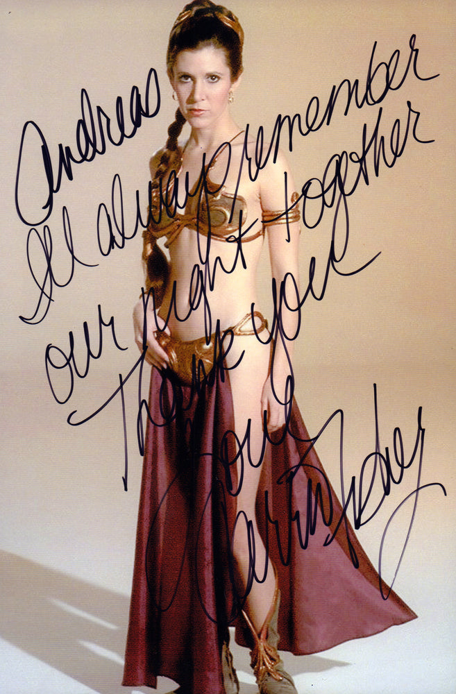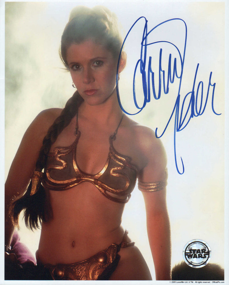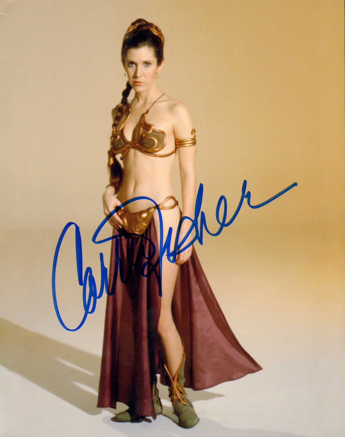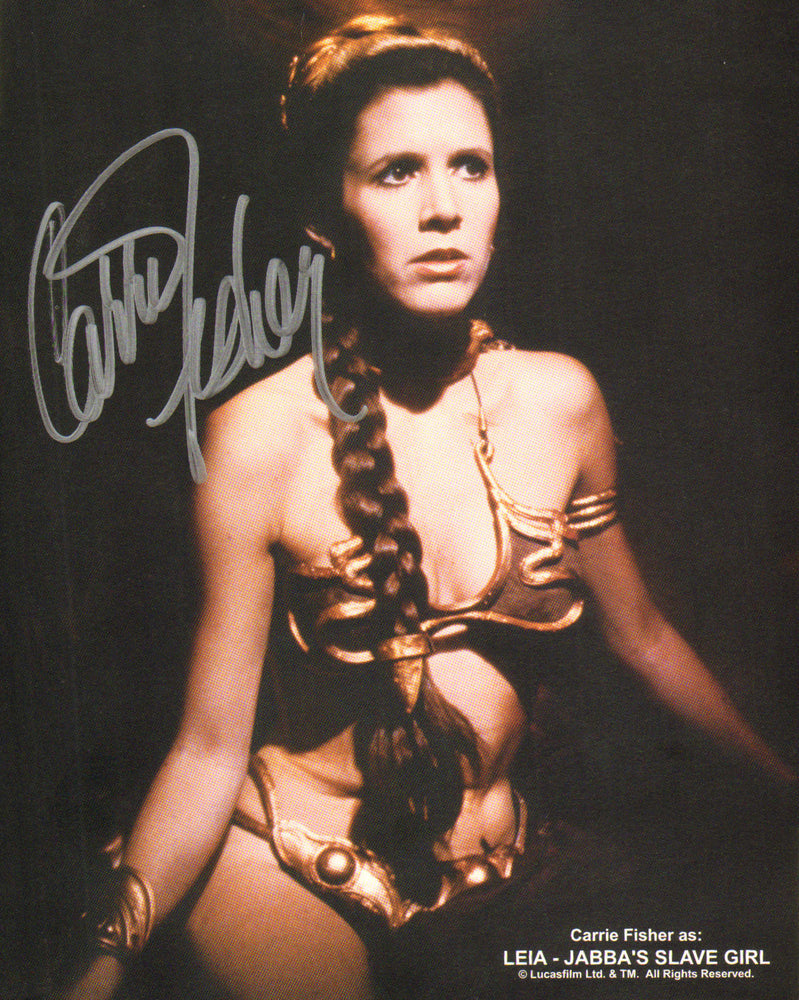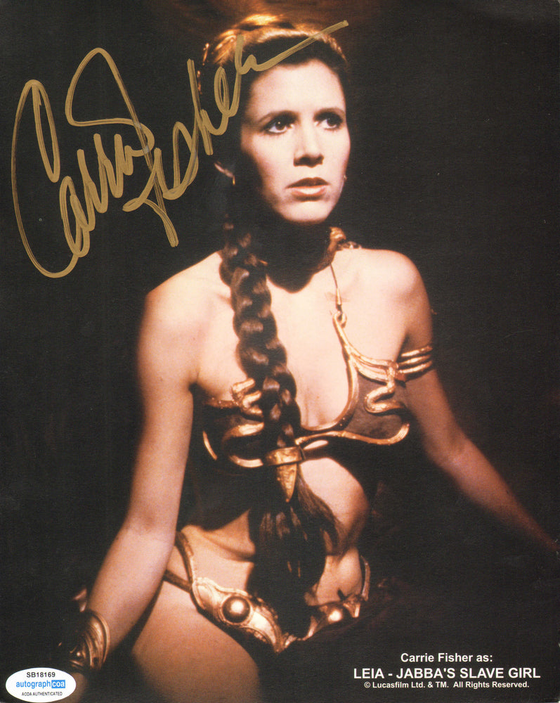 Carrie Fisher as Slave Princess Leia in Star Wars: Return of the Jedi Signed 8x12 Photo with Rare Suggestive Quote