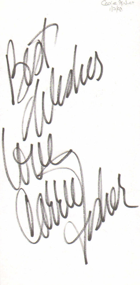 Carrie Fisher Princess Leia from Star Wars Signed 4x3 Index Card