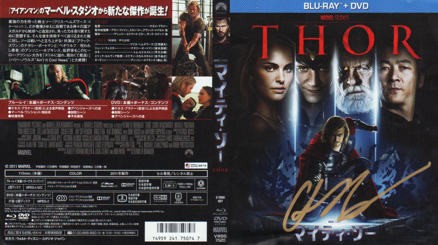 Chris Hemsworth as Thor in Thor (SWAU Witnessed) Signed 6x10.5 Japanese DVD Cover