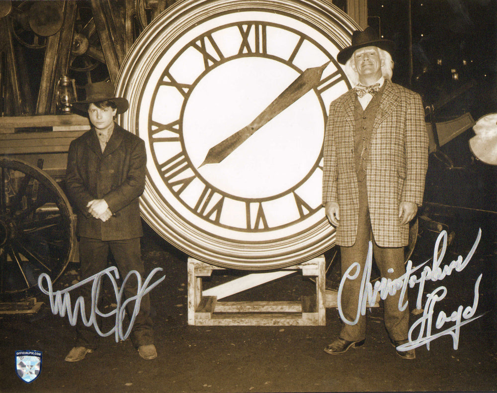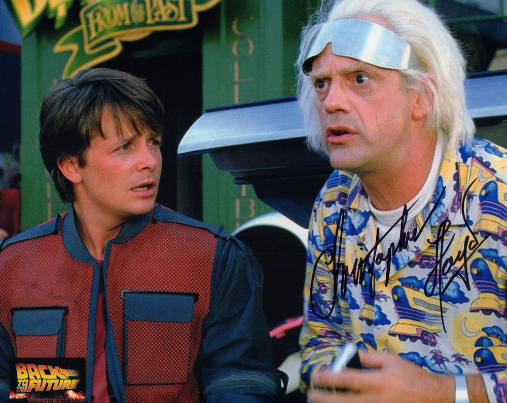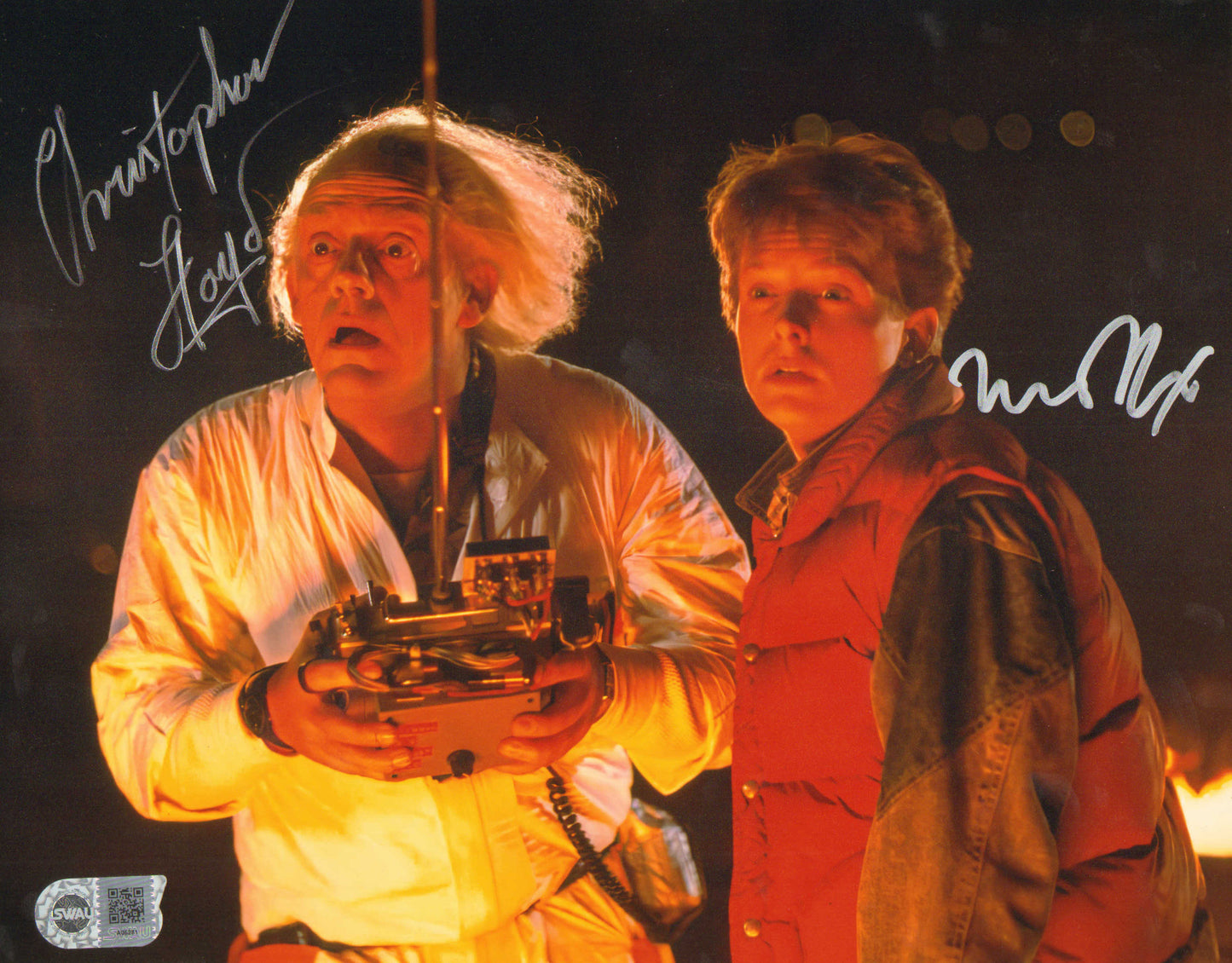 Christopher Lloyd as Doc Brown and Michael J. Fox as Marty McFly in Back to the Future (Official Pix/SWAU) Signed 11x14 Photo