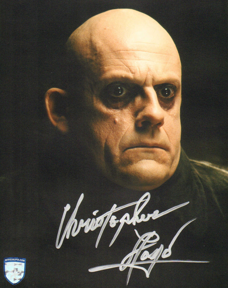 Christopher Lee as Saruman with Lawrence Makoare as Uruk-hai Lurtz in The Lord of the Rings: The Fellowship of the Ring Signed 16x20 Photo