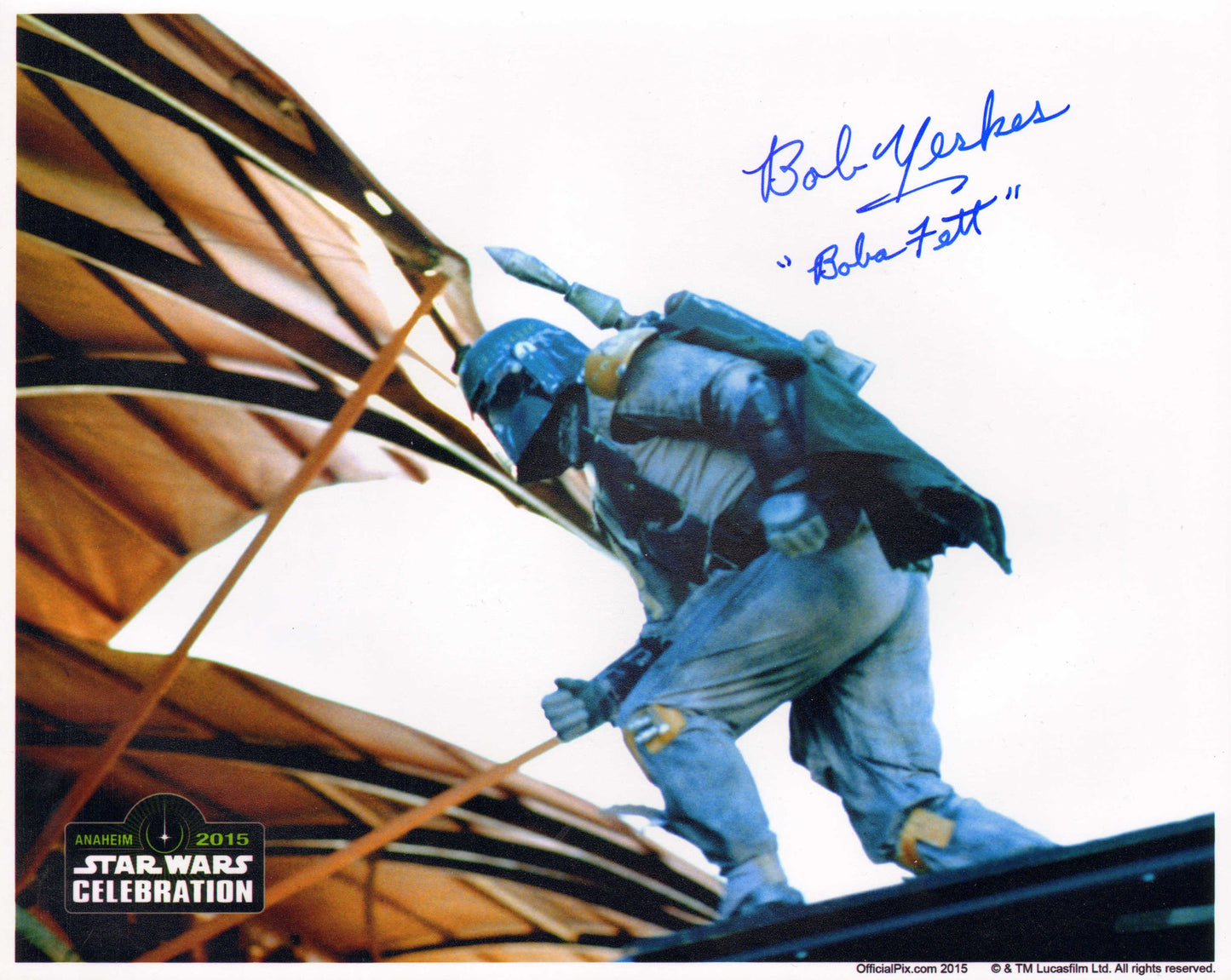 Bob Yerkes as Boba Fett Stunt Double in Star Wars: Return of the Jedi (Official Pix) Signed 8x10 Photo with Character Name