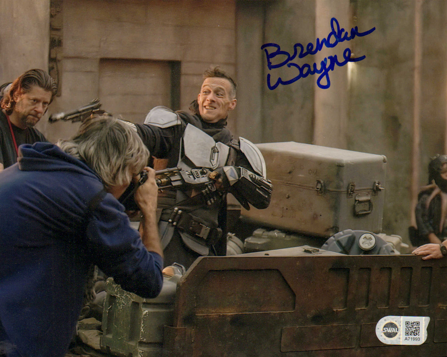 Brendan Wayne Behind the Scenes as the Mandalorian in Star Wars: The Mandalorian (SWAU) Signed 8x10 Photo