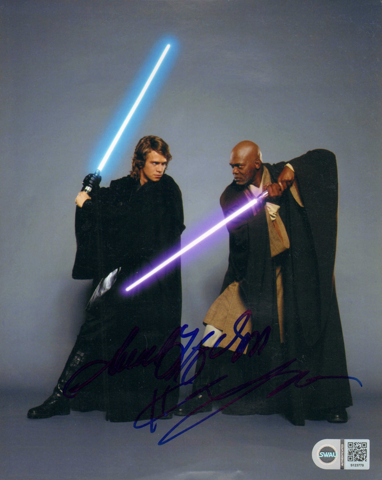 Samuel L. Jackson as Mace Windu & Hayden Christensen as Anakin Skywalker in Star Wars Episode III: Revenge of the Sith (SWAU) Signed 8x10 Photo