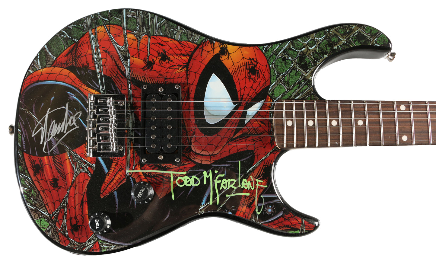 Spider-Man Electric Guitar (JSA) Signed by Artist: Todd McFarlane & Marvel Comics / Spider-Man Creator: Stan Lee