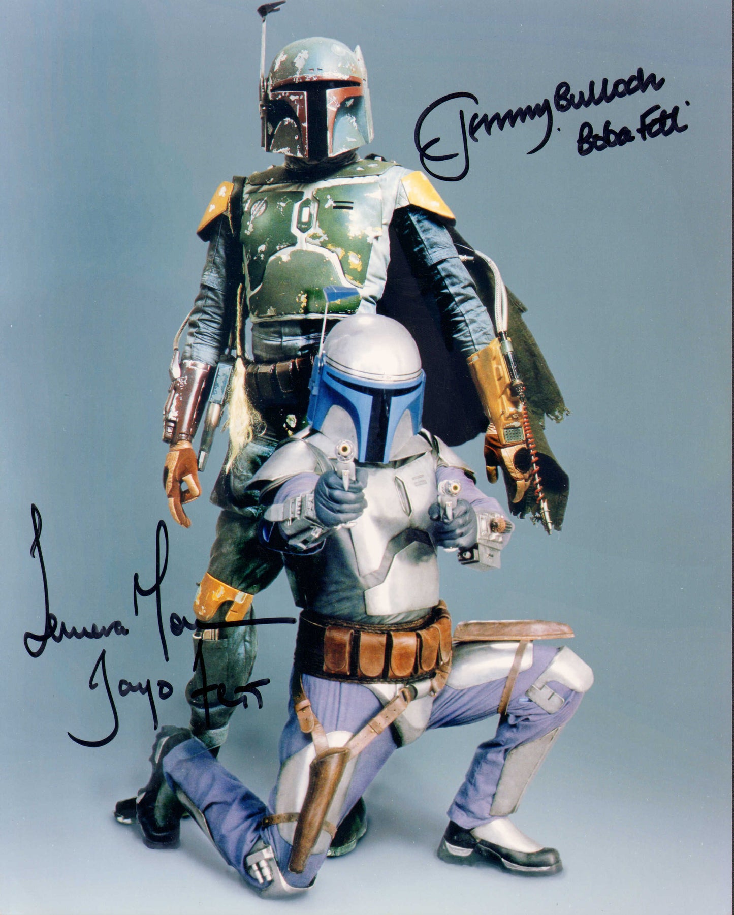 Temuera Morrison as Jango Fett & Jeremy Bulloch as Boba Fett in Star Wars Signed 8x10 Photo with Character Names