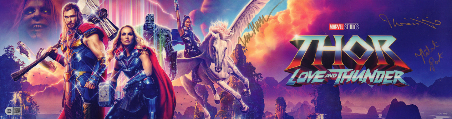 Thor: Love & Thunder 9.5x35 Poster Cast Signed by Natalie Portman, Tessa Thompson, & Director: Taika Waititi