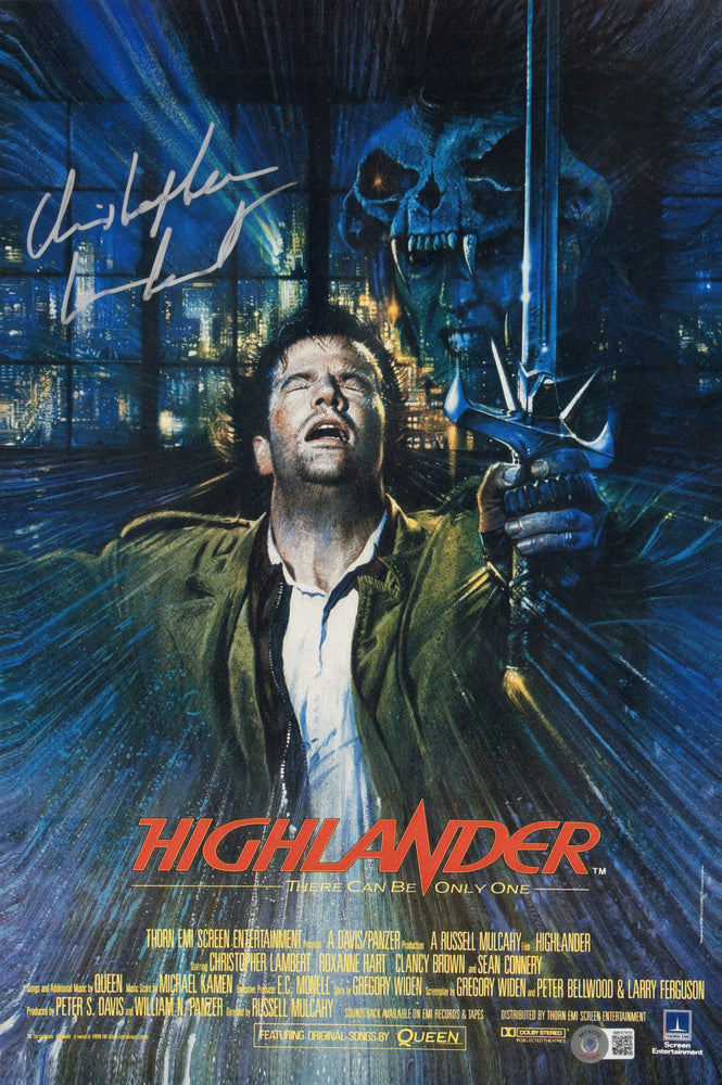Christopher Lambert as Connor MacLeod in Highlander (Beckett Witnessed) Signed 12x18 Mini Poster