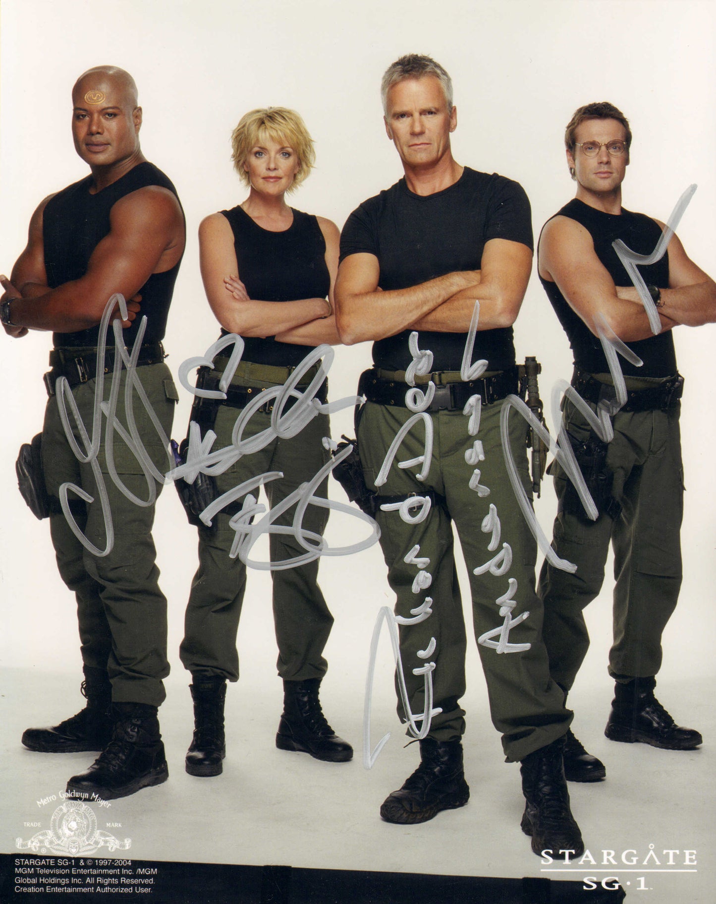 Stargate SG-1 8x10 Photo Cast Signed by Richard Dean Anderson, Amanda Tapping, Chris Judge, & Michael Shanks