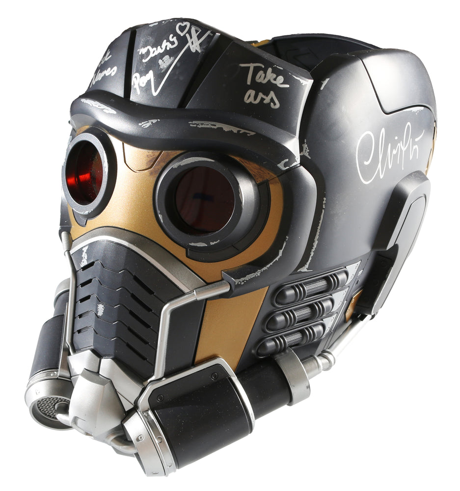 Chris Pratt as Star-Lord & Pom Klementieff as Mantis in Guardians of the Galaxy (Beckett Witnessed / JSA) Signed Hasbro Legends Series Prop Replica Helmet with Character Name & Quote