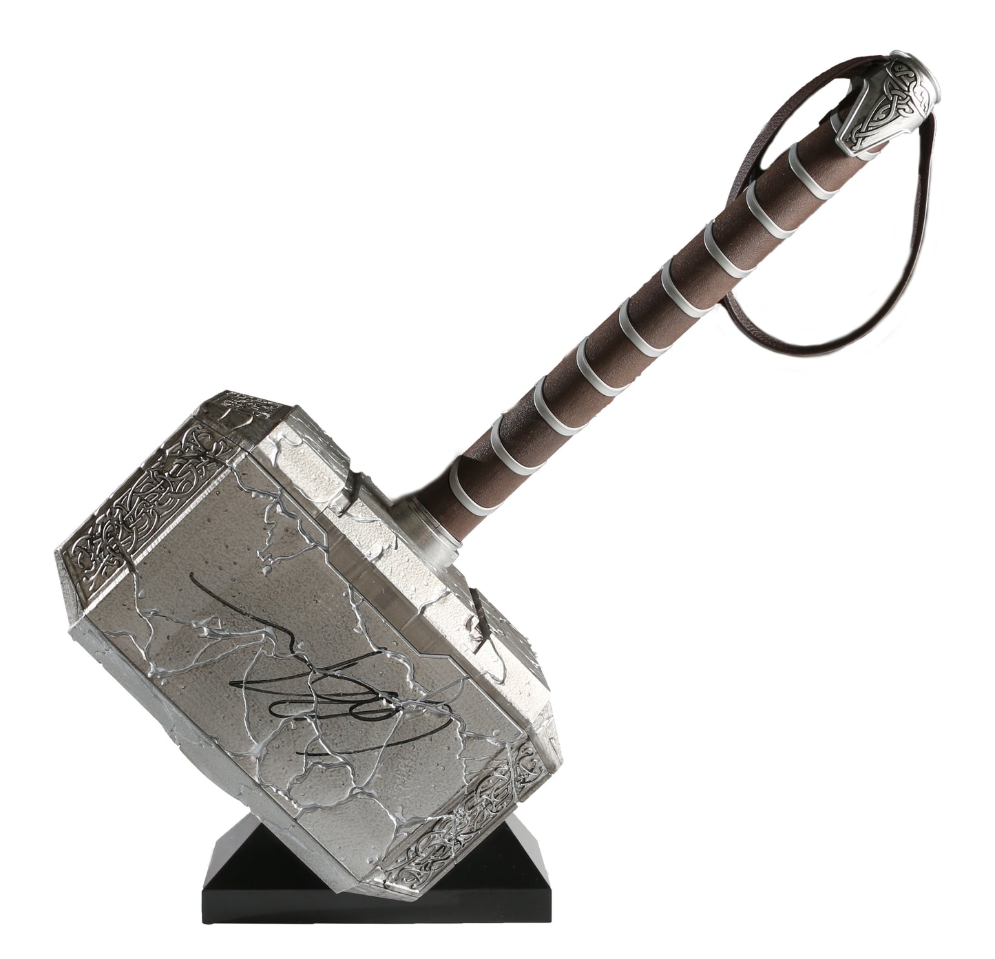 Marvel Legends Mighty Thor Mjolnir Prop Replica Hasbro Legends Series Electronic Cracked Hammer from Thor: Love & Thunder Signed by Chris Hemsworth