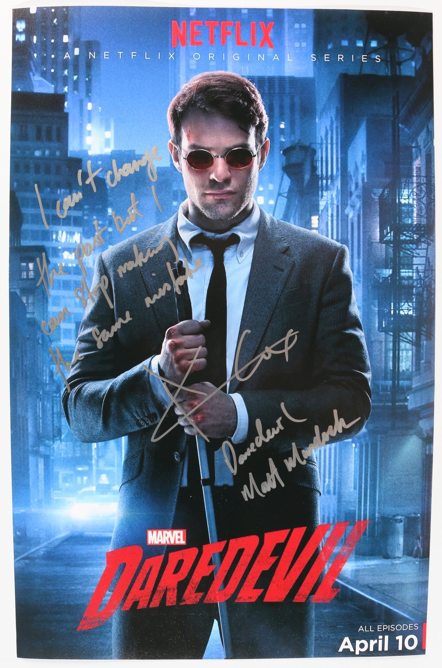 Charlie Cox as Matt Murdock in Daredevil Signed 11x17 Photo with Character Name & Quote