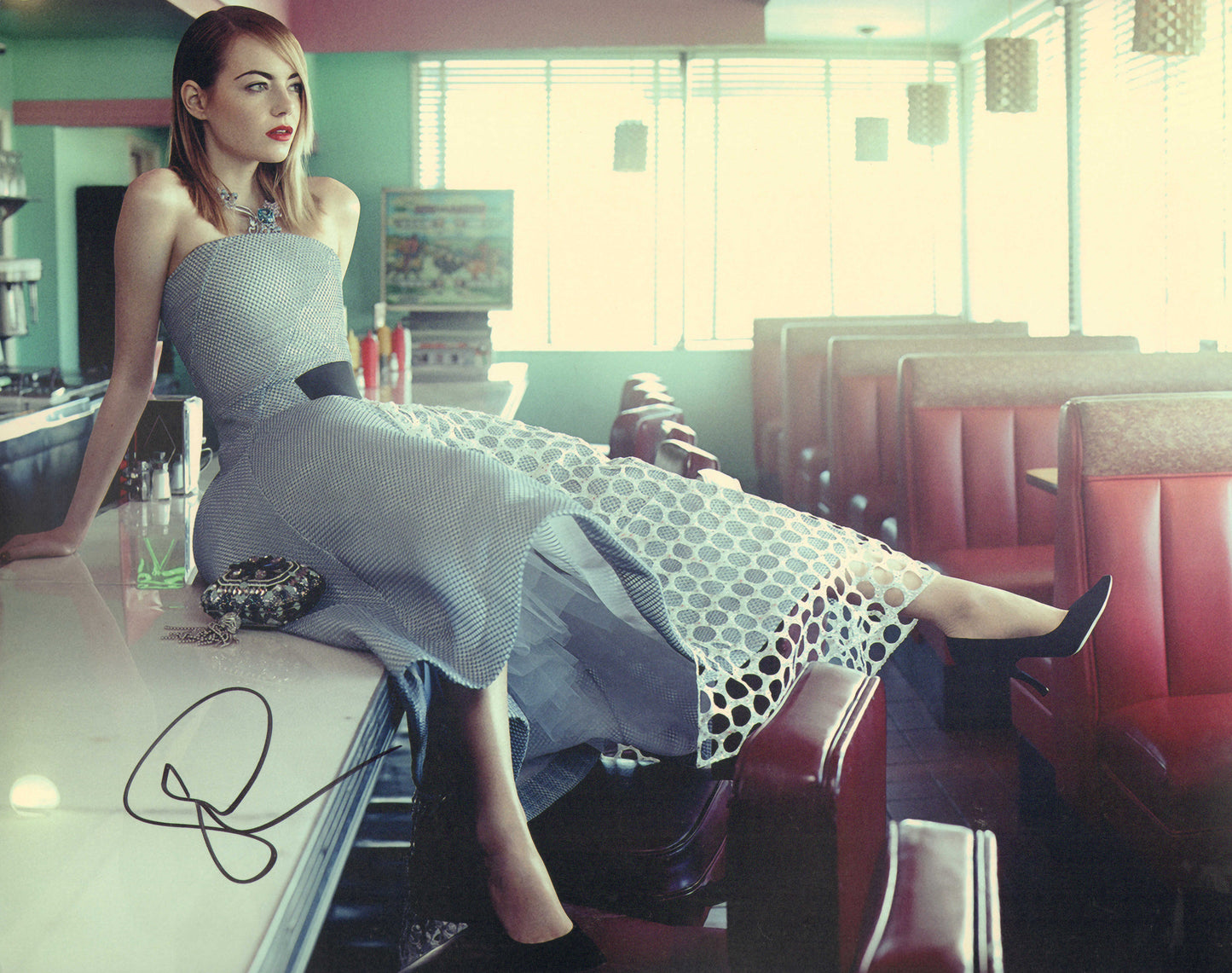 Emma Stone from The Amazing Spider-Man, Superbad, Zombieland, La La Land, Poor Things, & Cruella Signed 11x14 Photo