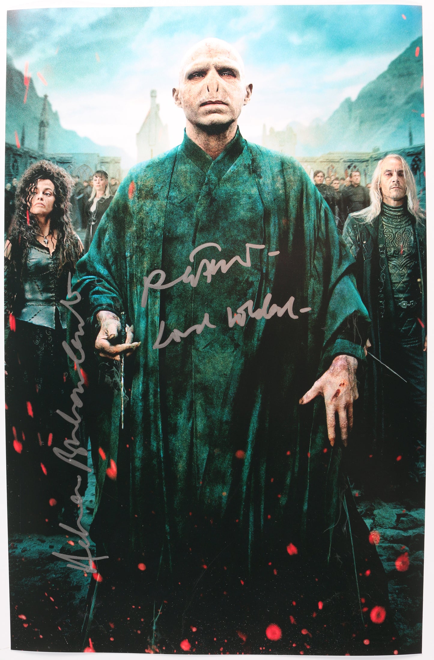 Ralph Fiennes as Lord Voldemort & Helena Bonham Carter as Bellatrix Lestrange in Harry Potter & The Deathly Hallows Part 2 Signed 11x17 Photo with Character Name